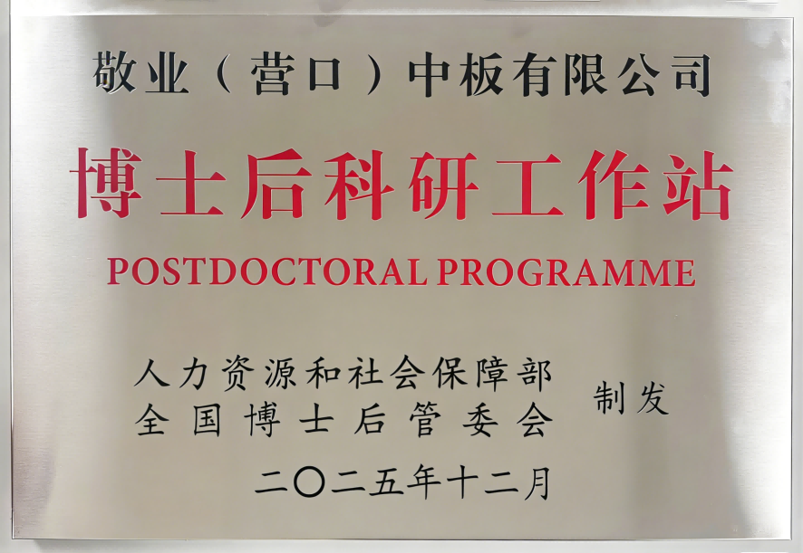 喜报!敬业营口中板获批设立国家级博士后科研工作站