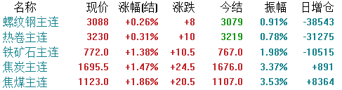 期货方面,截止收盘,各品种主力全部上涨。