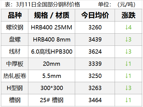 3月11日,钢材现货市场小幅下跌,期货市场主要品种主力全部上涨,其中螺纹涨0.29%、热卷涨0.28%、铁矿涨0.90%,焦炭涨0.73%,焦煤涨0.57%。终端市场季节性回暖,叠加限产结束后钢厂恢复生产,需求预期增加,但基本面改善程度有限,今日钢材期价小幅上行,明日钢价......