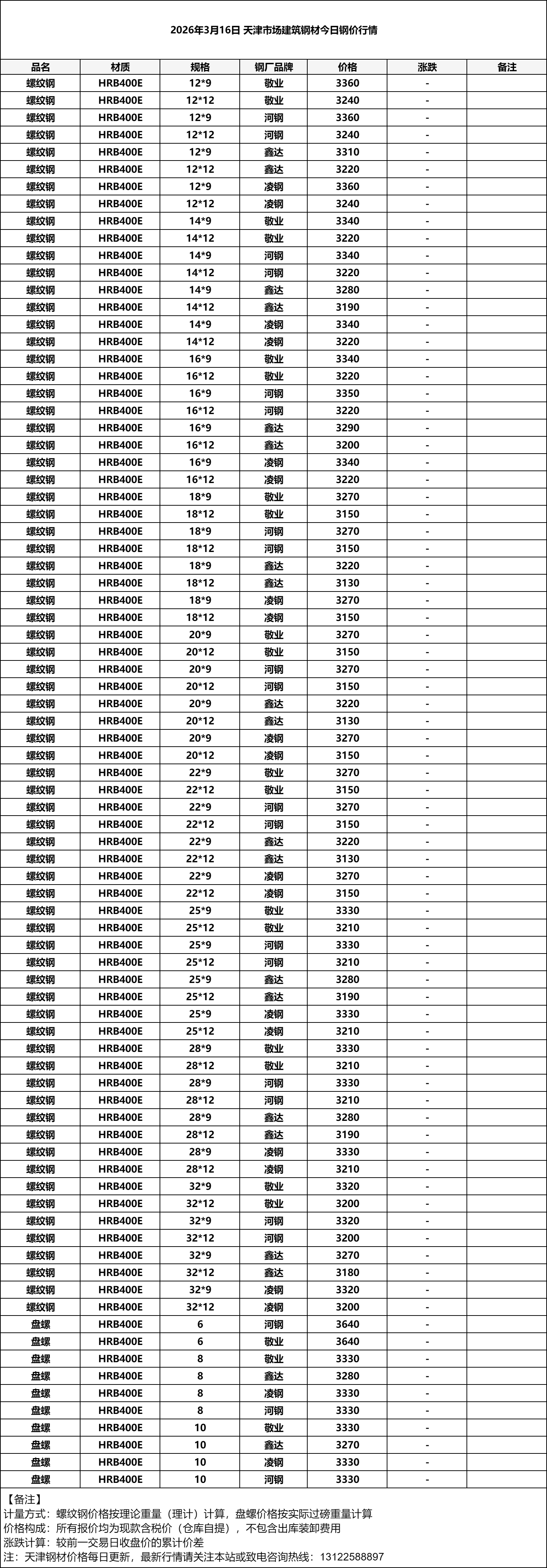 2026年3月16日 天津市场建筑钢材今日钢价行情