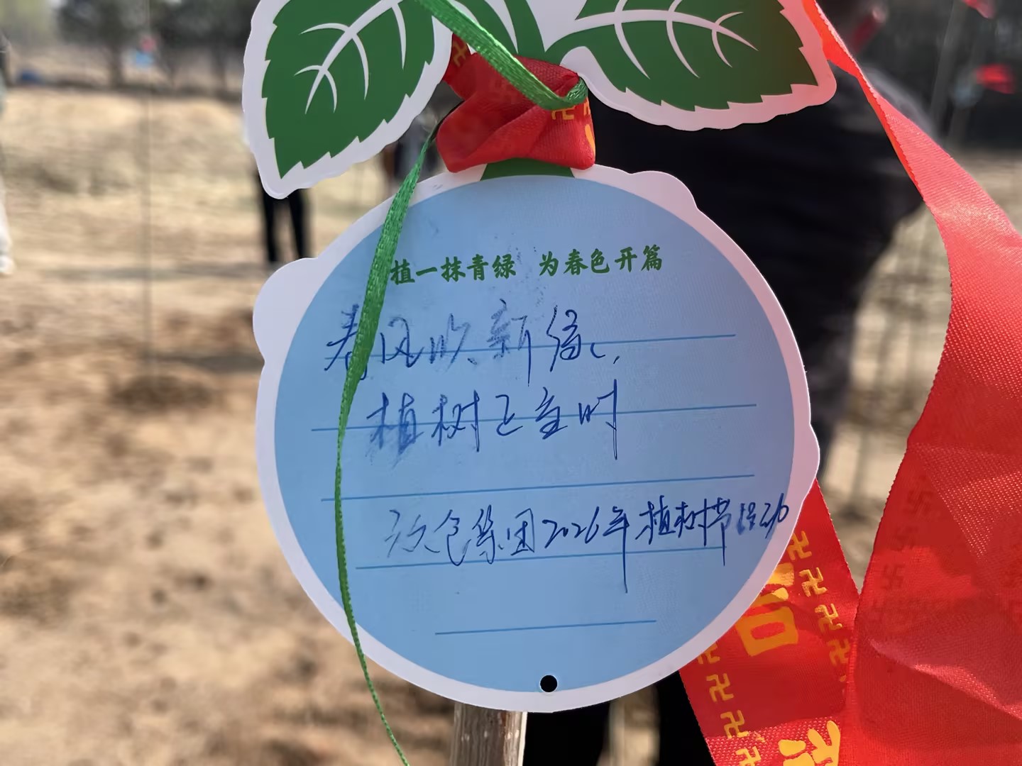 春风拂绿黄河岸,植树添彩正当时。植树活动开始前,大家围在松软的新土旁,手持卡片与纸笔,凝神静气,认真写下心底最真挚的祝愿。一笔一画,皆是期许;一字一句,满含深情。微风轻拂,心愿藏于泥土,待春日暖阳浇灌,愿每一份美好都生根发芽,每一个梦想都枝繁叶茂,在岁月里静静开花。